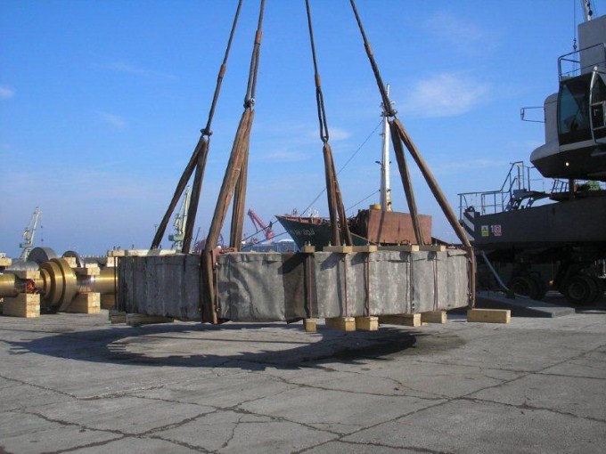 През Септември 2012, Юнишипинг бяхме ангажирани за чартиране на кораб от Констанца, Румъния до Мумбай, Индия за доставка на 3 броя колета (оборудване за фабрика за клинкер) с единични размери 7330 x 7330 x 1410 mm и тегло 79.050т, общо 3 броя 233,100т / 226,036куб.м. Товарът е произведен в Румъния по поръчка на FLSmith.